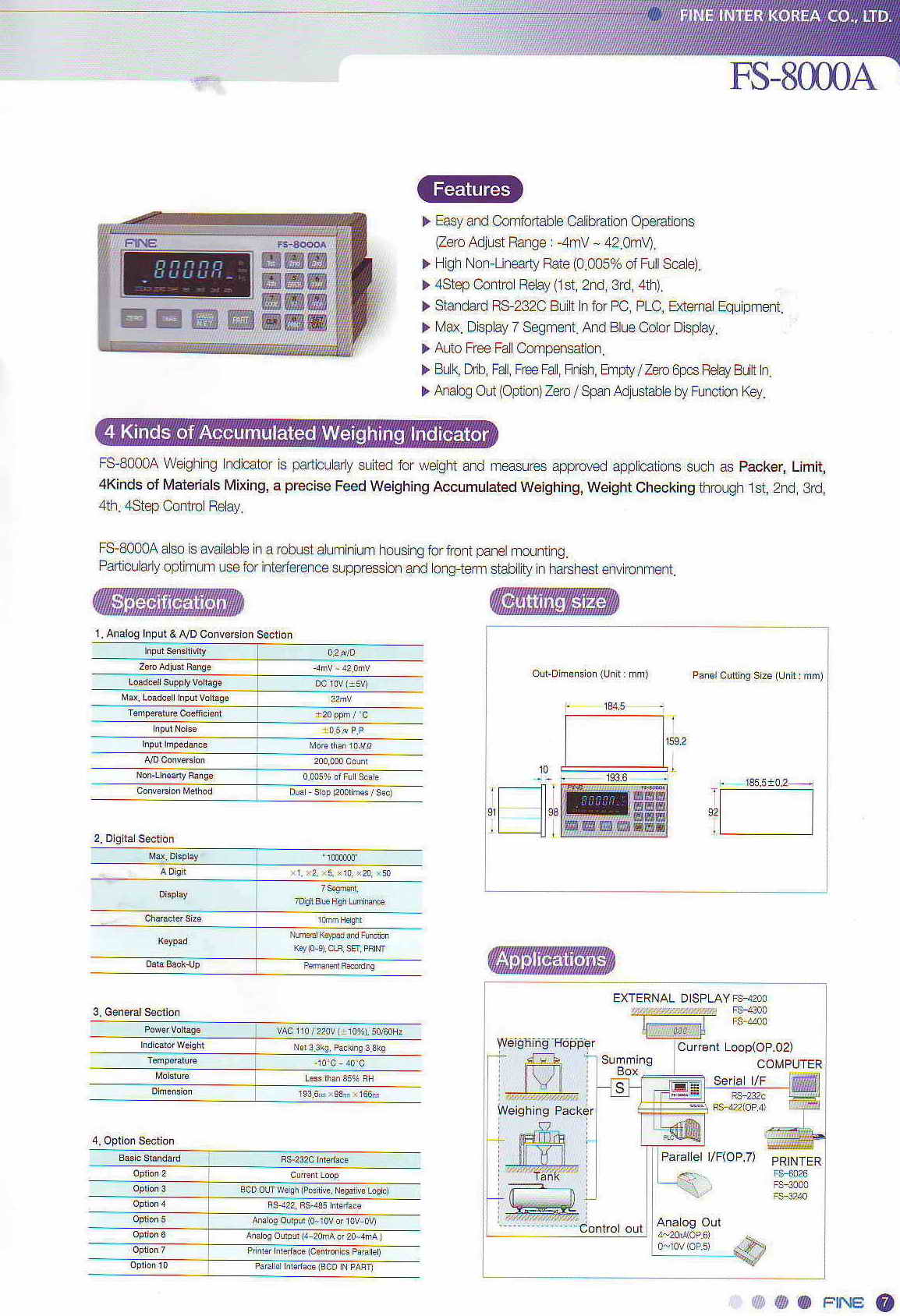 韓國(guó)Fine稱重顯示儀表,稱重顯示儀表FS-8000,顯示儀表FS-8000,F(xiàn)S-8000                          咨詢熱線:TEL:0755-86111857 FAX:0755-26738841 Q:2209800901 伍工