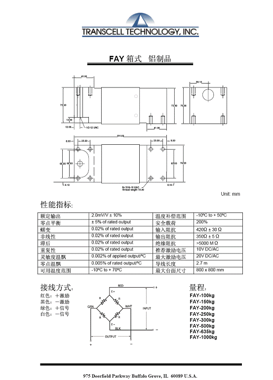 產(chǎn)品名稱(chēng):Transcell FAY 箱式稱(chēng)重傳感器(load cells)