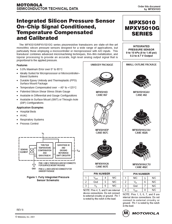 MPX5010 氣壓傳感器(sensor)