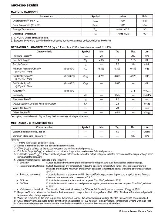 MPX4200 氣壓傳感器(sensor)