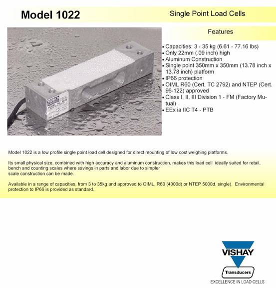 描述:1022是為低成本稱重秤設(shè)計(jì)的單點(diǎn)式傳感器。其緊湊的外形尺寸以及較低的成本適用于零售秤、計(jì)價(jià)秤和計(jì)數(shù)秤。