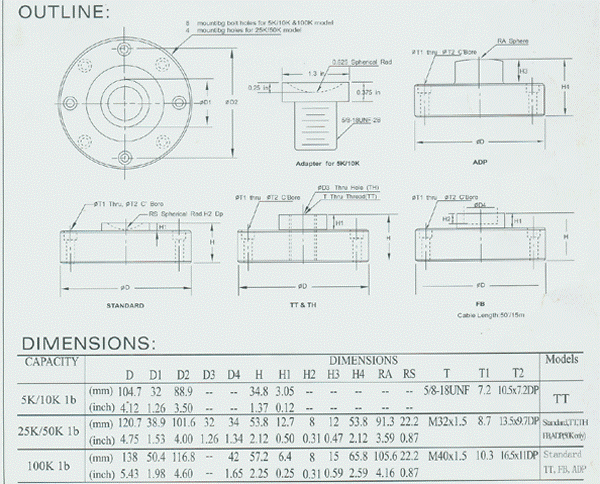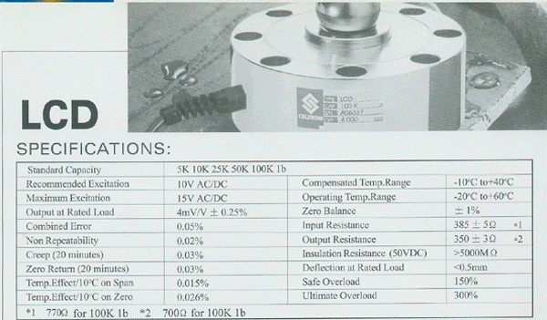 量程5K, 10K, 25K, 50K, 100Klb