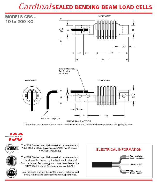Csrdinal CB6 波紋管稱重傳感器(load cells)