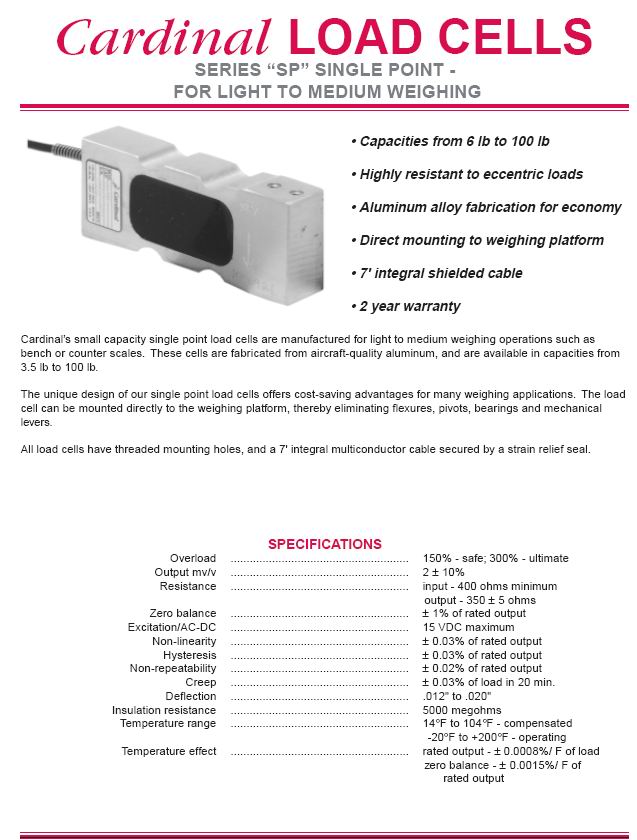 Cardinal SP 單點(diǎn)式稱(chēng)重傳感器(load cells)
