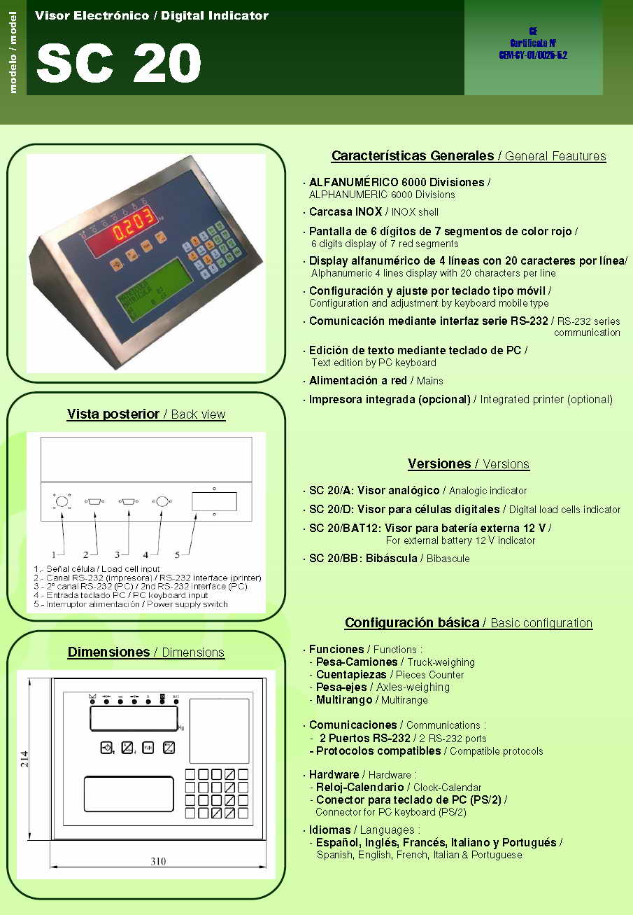 Sensocar SC-20 稱重顯示儀表(indicator)