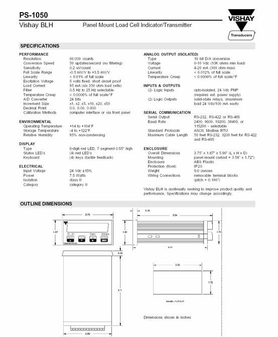 產(chǎn)品名稱(chēng):PS-1050 稱(chēng)重控制器(transmitter/controller)