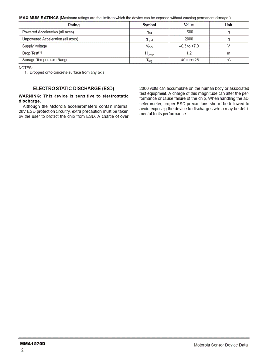 MMA1270D 加速度傳感器(accelerometer)