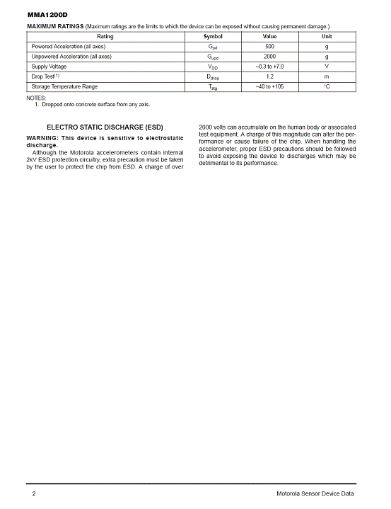 產(chǎn)品名稱(chēng):MMA1200D 加速度傳感器(accelerometer)