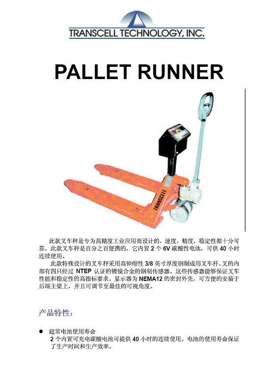 產(chǎn)品名稱:Transcell PALLET RUNNER 叉車秤(scales)