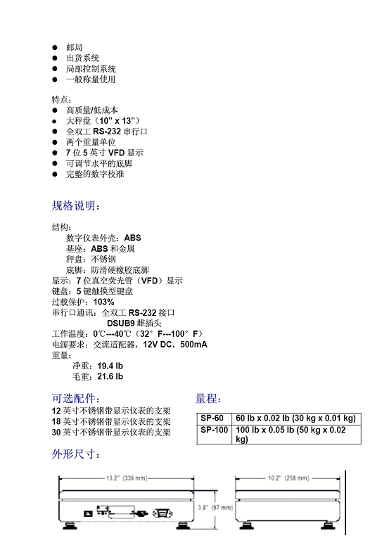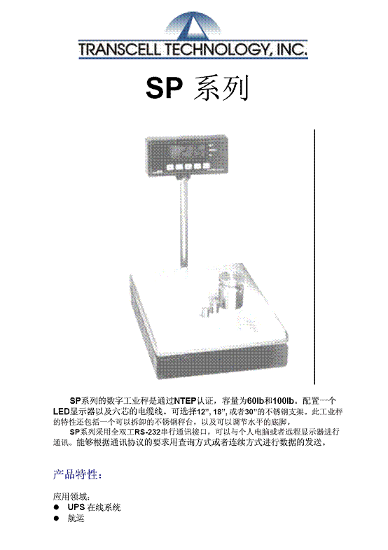 產(chǎn)品名稱:Transcell SP系列 工業(yè)秤(scales)