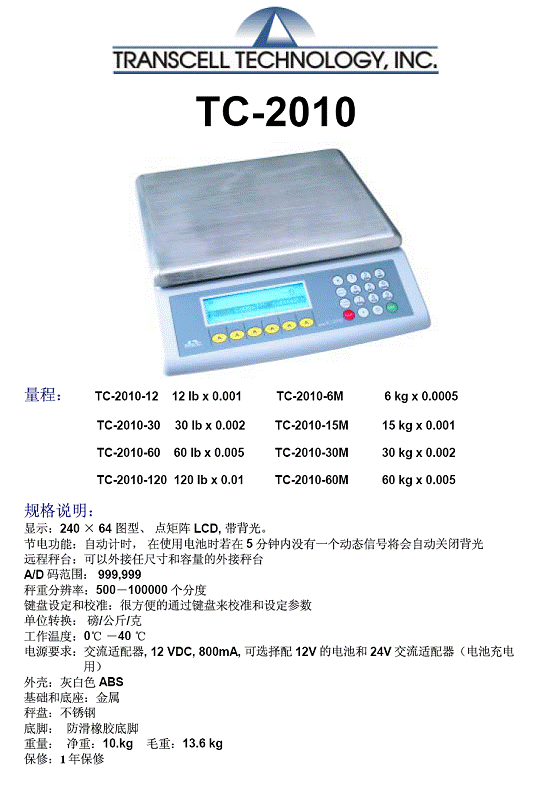 Transcell TC-2010 計(jì)數(shù)秤(scales)