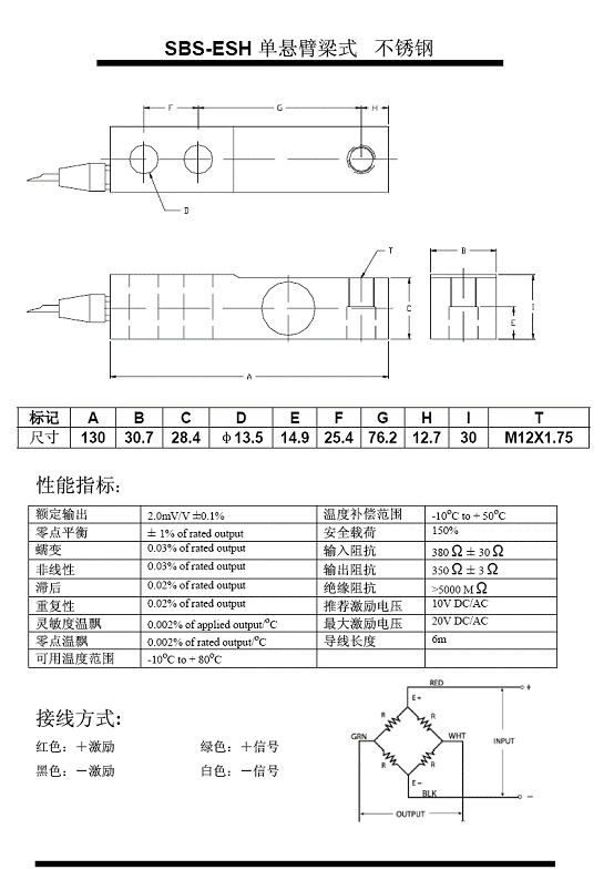 產(chǎn)品名稱(chēng):SBS-ESH 單懸臂梁式稱(chēng)重傳感器(load cells)
