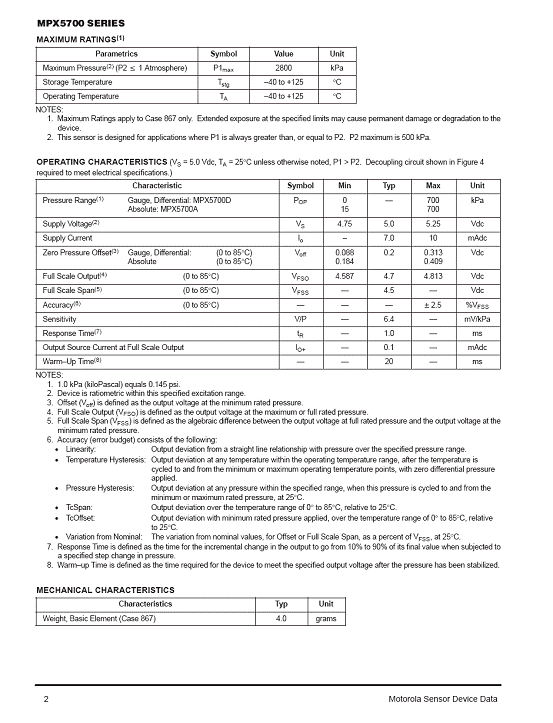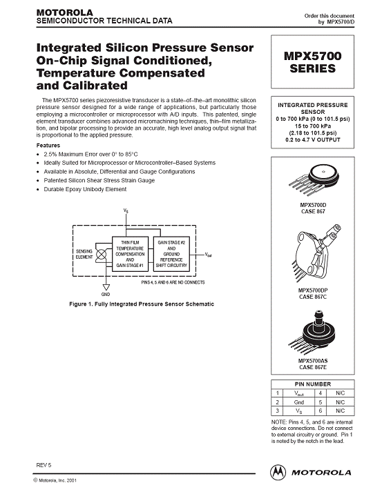 MPX5700 氣壓傳感器(sensor)
