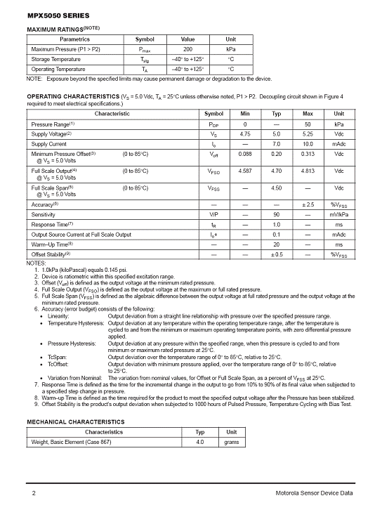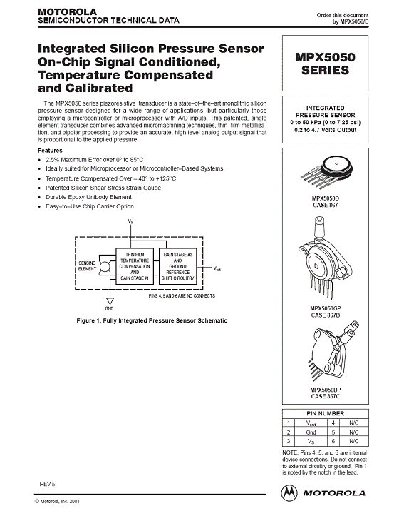 產(chǎn)品名稱(chēng):MPX5050 氣壓傳感器(sensor)