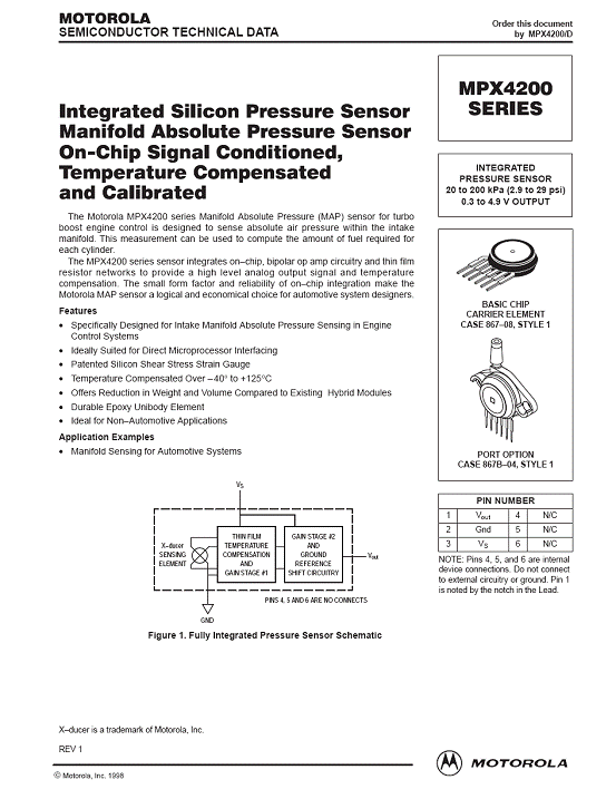 產(chǎn)品名稱:MPX4200 氣壓傳感器(sensor)