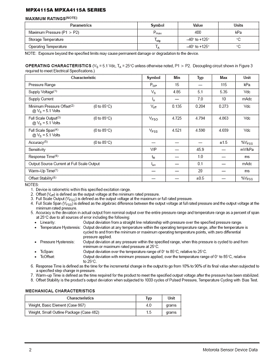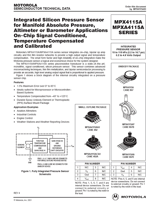 產(chǎn)品名稱(chēng):MPX4115A 氣壓傳感器(sensor)