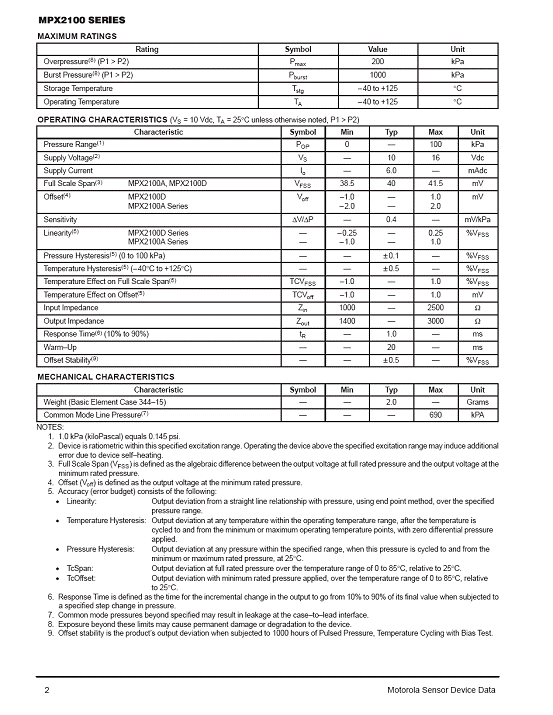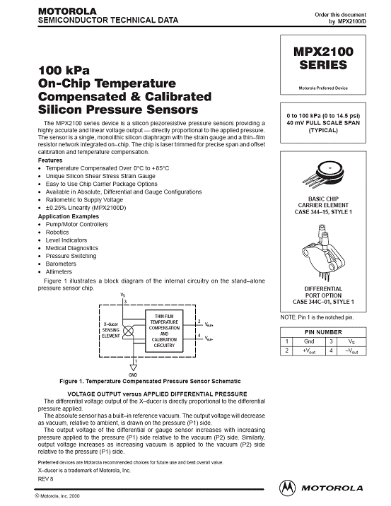 產(chǎn)品名稱:MPX2100 氣壓傳感器(sensor)