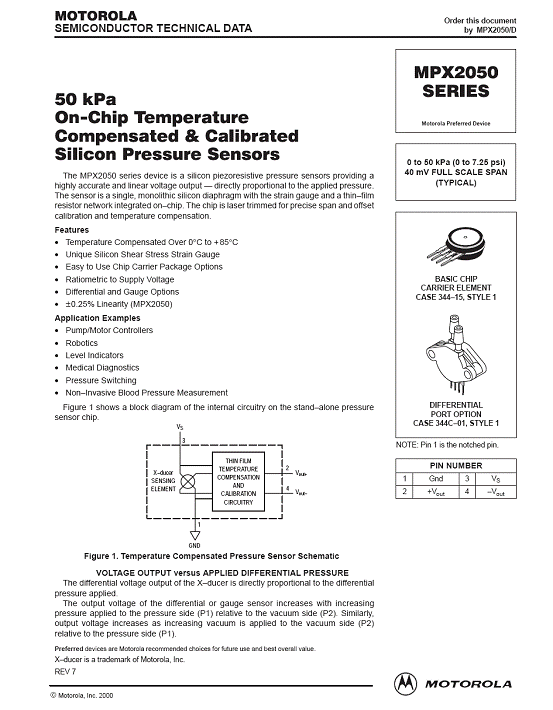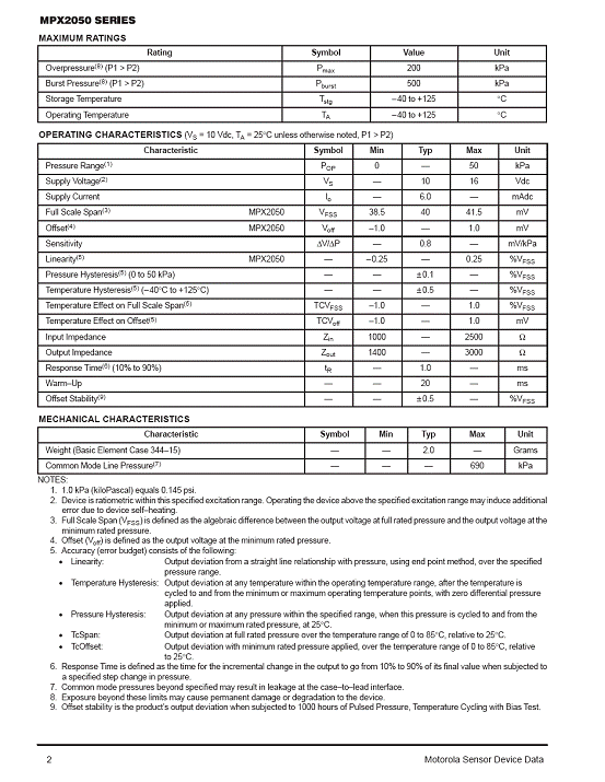 MPX2050 氣壓傳感器(sensor)