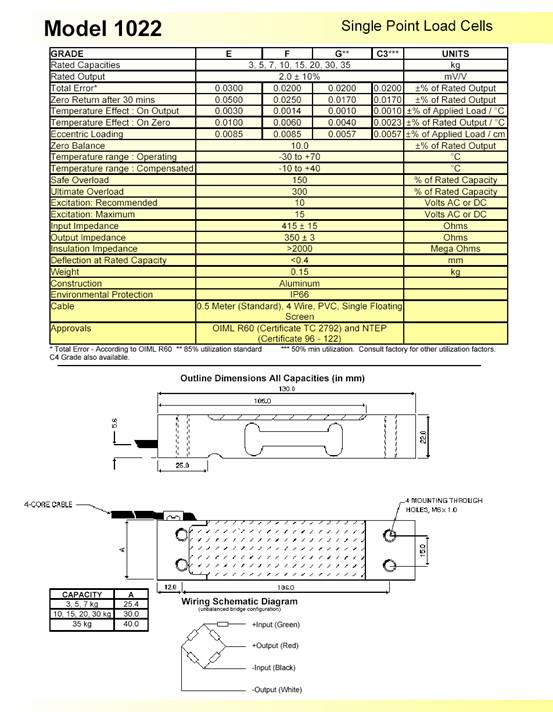 描述:1022是為低成本稱重秤設(shè)計(jì)的單點(diǎn)式傳感器。其緊湊的外形尺寸以及較低的成本適用于零售秤、計(jì)價(jià)秤和計(jì)數(shù)秤。