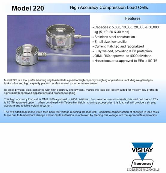 產(chǎn)品名稱:Tedea 220 稱重傳感器(load cells)