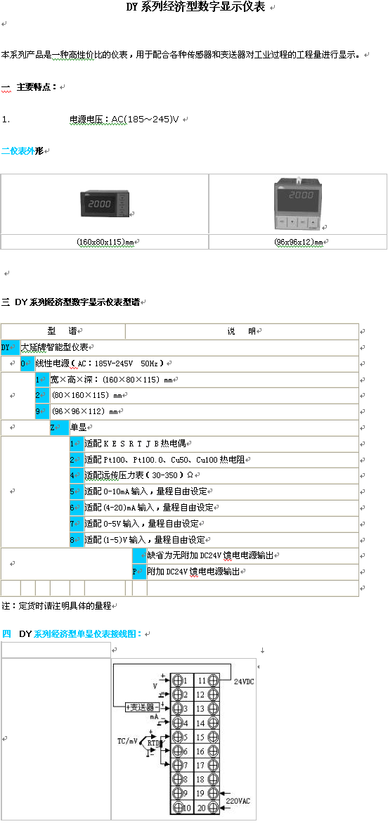 產(chǎn)品名稱:DY系列 經(jīng)濟(jì)型數(shù)字顯示儀表(Indicator)